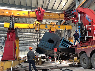 【產品名稱】:兩組液壓龍門吊安裝大型壓力機